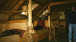 ![]() Vi går in i ett av husen tillsammans med vår guide Gudbjörg (till vänster på bild). | ![]() Här inne var det skumt trots att det var mitt på dagen. De som bodde här kunde bara utföra sina hantverkssysslor under den ljusaste delen av dagen. | ![]() Färden går vidare norrut längs den västra sidan av Skagafjördur (fjördur = fjord). |