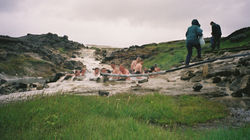 ![]() På eftermiddagen åkte vi till bonden vi skulle besöka och där vi även skulle övernatta. | ![]() Efter middag hos bonden och bad i hans varma källa ute i den kalla kvällen sov vi och några till i denna stuga. | ![]() Nästa morgon var det dags för besök på vulkanen Krafla, som hade sitt senaste utbrott 1984. Eftersom Gudbjörg är geolog så hade hon mycket att berätta om det vi hade omkring oss. |