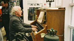 ![]() Vi går runt och beundrar alla fina saker! Här båt-avdelningen. | ![]() Isländska folkdräkter. | ![]() Men så kommer det mest oförglömliga. Han sätter sig vid sin orgel och framför "Ack Värmeland du sköna" på svenska med hög och vacker stämma! |