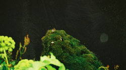 ![]() Den vattenfyllda kratern. | ![]() Detta tunna lager av mossa är den första växtligheten på lavan efter att den svalnat. | ![]() Blommande sluttningar längre bort från vulkanen. |