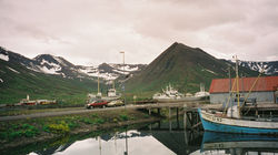 ![]() Långt ute i Norra ishavet kan vi se "Den fredlöses fästning", ön Drangey. | ![]() Vi stannar till i den lilla kuststaden Hofsos för att besöka ett museum över utvandringen till Amerika på 1800-talet. | ![]() Vi är framme i fiskebyn Siglufjördur där vi ska få veta något om Islands fiskehistoria. |