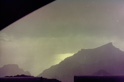 Vi har installerat oss på hotellet och från balkongen kan man se en liten bit av den gigantiska klippan "Los Gigantes".