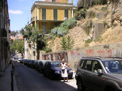 ![]() En bit upp från stranden finns en scen och på kvällarna blir det dans och lokal underhållning. Det känns som att inget är planerat och vem som helst får uppträda. Entusiastisk publik. | ![]() Nästa morgon tog vi ett dopp i Atlanten innan vi satte oss i bilen och for vidare mot Porto. | ![]() Framme i Porto snurrar vi länge runt med bilen innan vi tar oss fram till vårt hotell. |