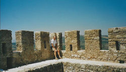 ![]() Vi kämpar oss uppåt (se nedre högra hörnet). Man ser muren som g år runt hela citadellet. | ![]() Uppe. | ![]() En fantastisk medeltida borg. |